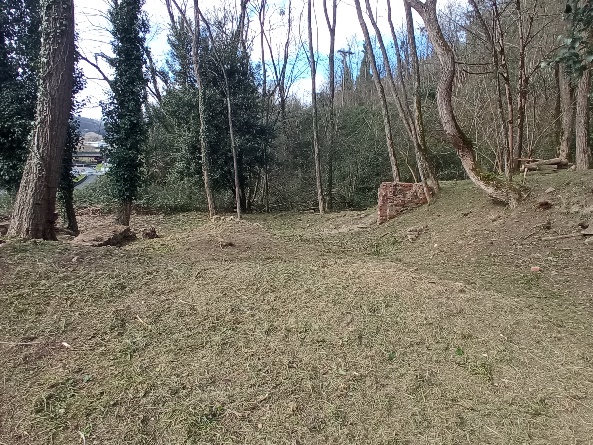 Desbroce y limpieza de todo el entorno con la retirada de restos. Este trabajo realizado al inicio del proyecto fue considerado dentro del periodo de aprendizaje y prácticas del grupo de 10 operarios.